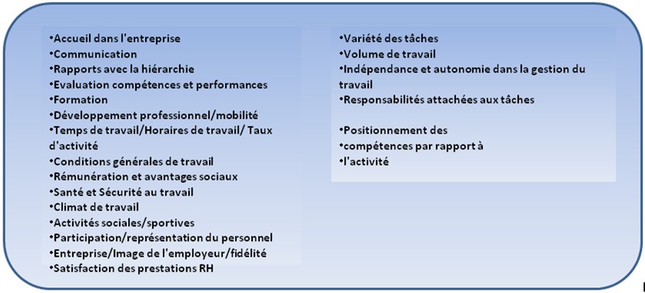 Au-delà de la mesure classique de la satisfaction, notre approche a pour but de mesurer sous les différents angles que sont les compétences, la nature de l'activité et de l'environnement de travail:
