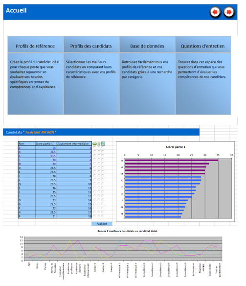 Le gestionnaire de recrutement RH est un programme très simple d’utilisation qui vous fera gagner du temps et vous assurera une sélection complète et objective de vos candidats.